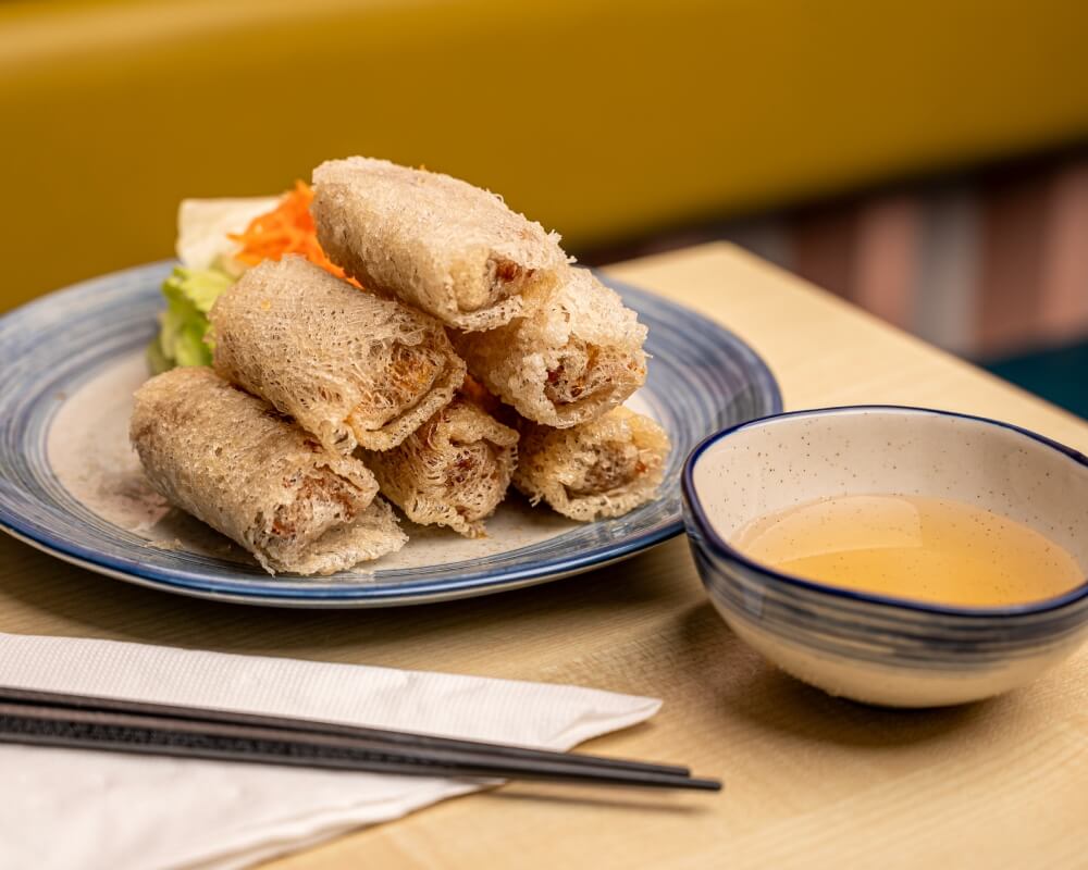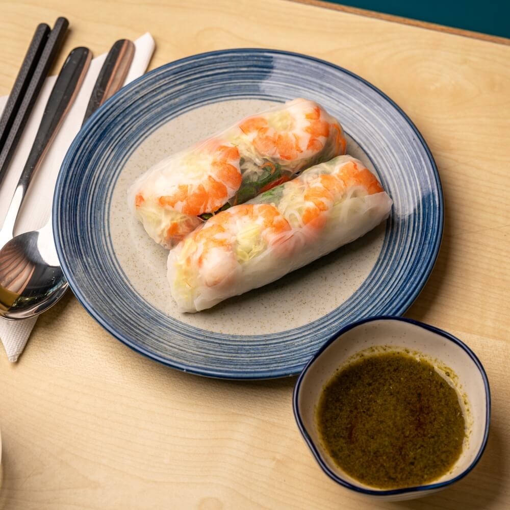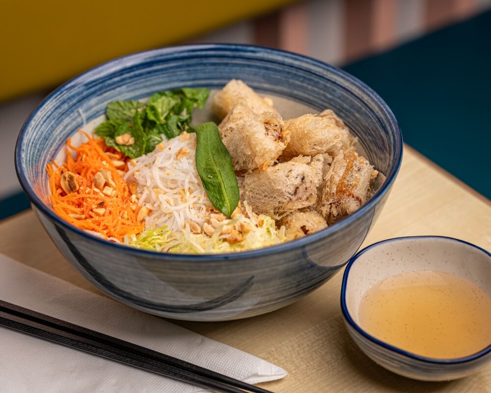 Vermicelli noodles, lettuce, pickled carrot, mint served with hoisin and basil vinagarette