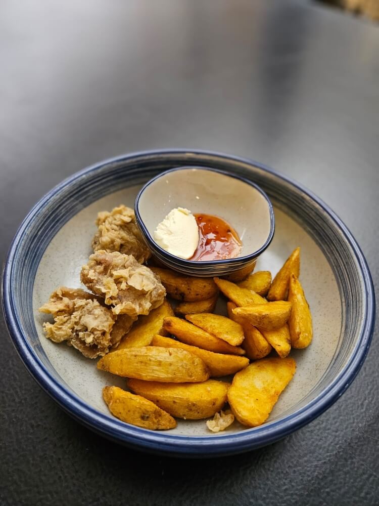 Kids pop corn chicken (4pcs) and wedges with sour cream/sweet chilli
