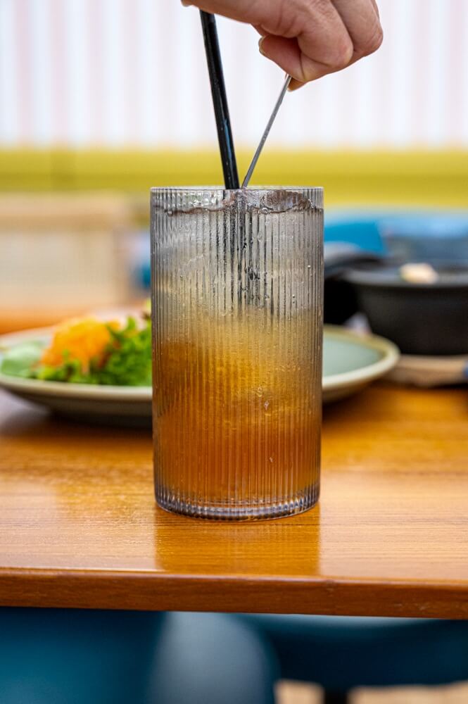 Not actually brewed from tea leaves, this Korean citron tea is a flavorful beverage prepared using thin slices of the yuzu fruit with sugar and honey topped with sparkling water.