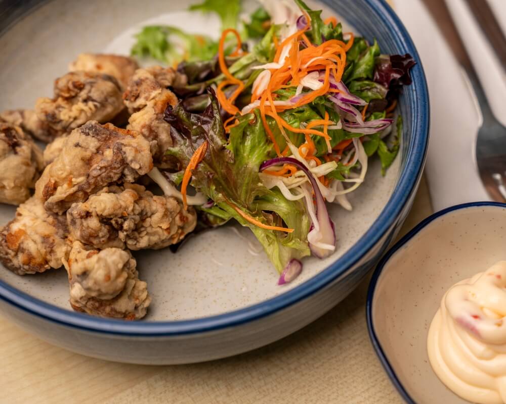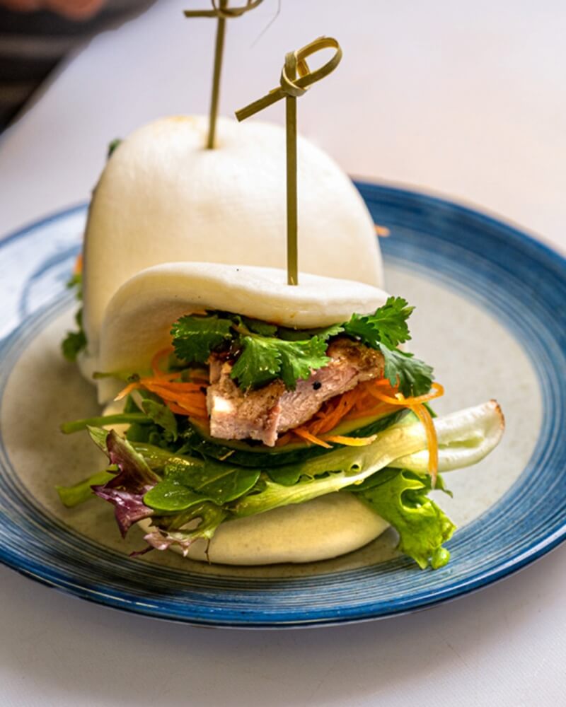 Marinated grilled chicken, mixed leaves, pickled carrot, coriander and hoisin